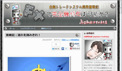 吉田のFXブログです。吉田の師匠である為替和尚とともに、5年以上取り組んでいる、FXの自動トレードシステム開発に関するブログです。競馬三昧の「ブログあります」に変わって、メインで情報発信しています。